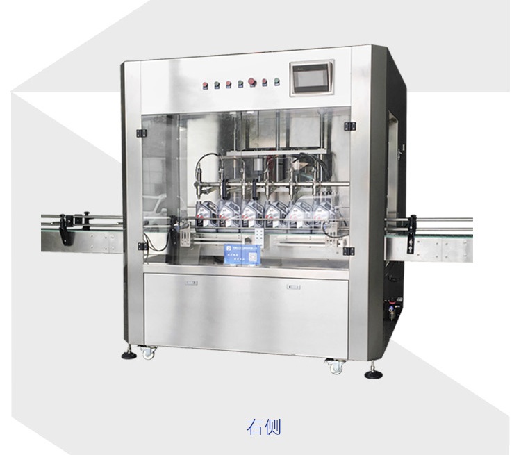該六頭柱塞式全自動潤滑油灌裝機(jī)獨(dú)特的灌裝頭設(shè)計(jì)及真空回吸系統(tǒng),確保灌裝過程無殘油滴漏,快慢雙速灌裝,灌裝速度可調(diào),杜絕溢瓶現(xiàn)象。