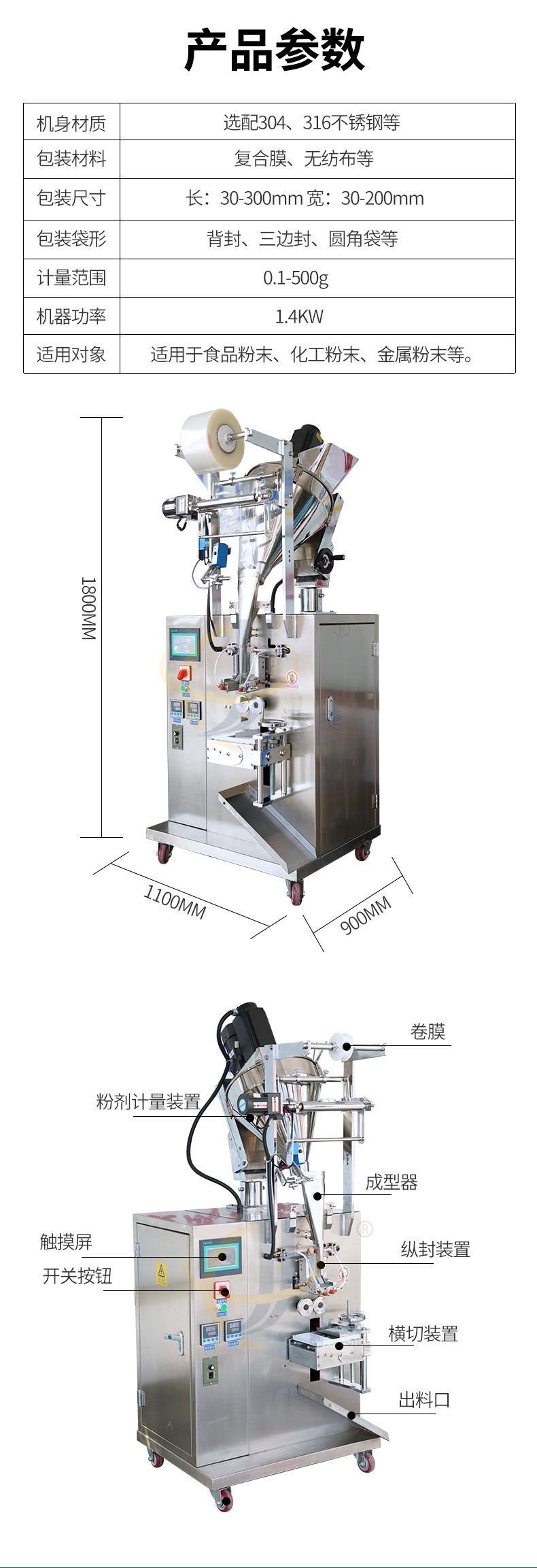 適用于食品行業(yè)、日用品行業(yè)、生活用品行業(yè)。餐飲用品等行業(yè)產(chǎn)品包裝如三七超細(xì)粉、奶粉、豆粉、中藥粉、調(diào)料粉、雞精、鹽、砂糖、等產(chǎn)品。